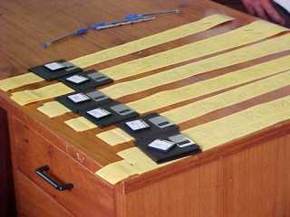 A Figura 2 mostra disquetes, memórias (flash-cards) de votação, também denominadas de flashes externas, e relatórios obtidos após os processos e programas executados pelos técnicos do TSE. A Figura 3 reproduz uma flash externa de uma seção eleitoral, os técnicos do TSE determinaram que todos os presentes deveriam acreditar que o conteúdo das memórias é aquilo que eles diziam ser, não permitindo que os auditores independentes fizessem quaisquer testes e verificações de conteúdo naquela mídia, mesmo sabendo-se que é impossível de se conferir qualquer conteúdo a olho nu.